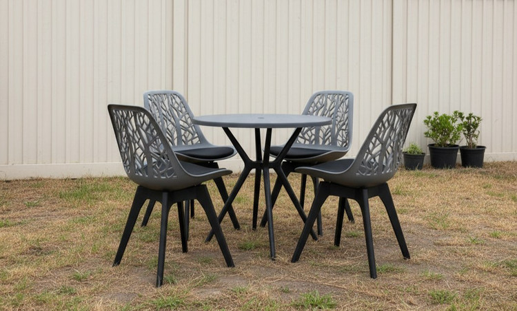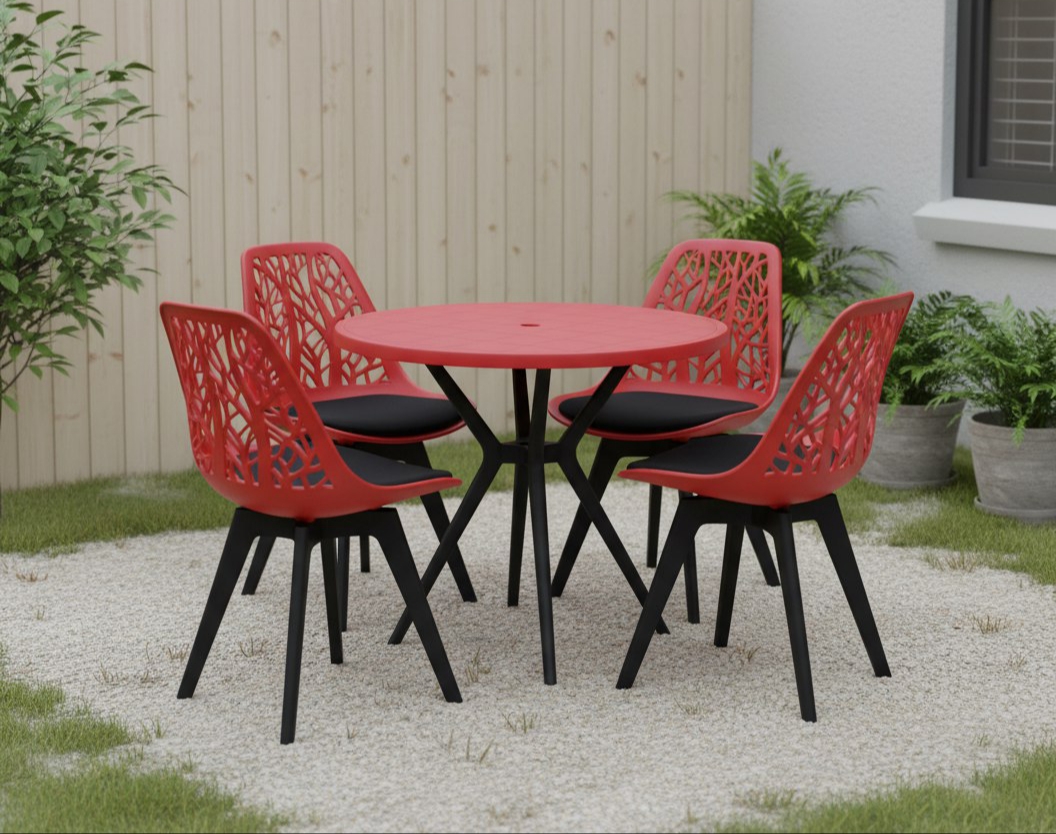 میز و صندلی شاخ و برگی پایه پلیمری با میز تمام پلیمری