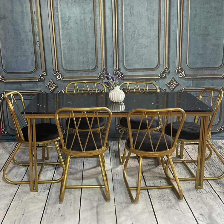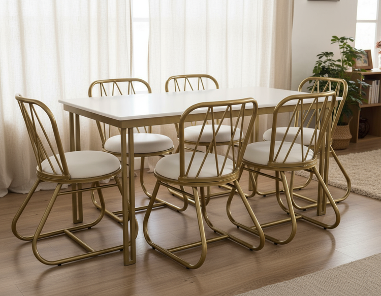 ست شش نفره مدل ماهلین فلزی طلایی/میز 160 در 80