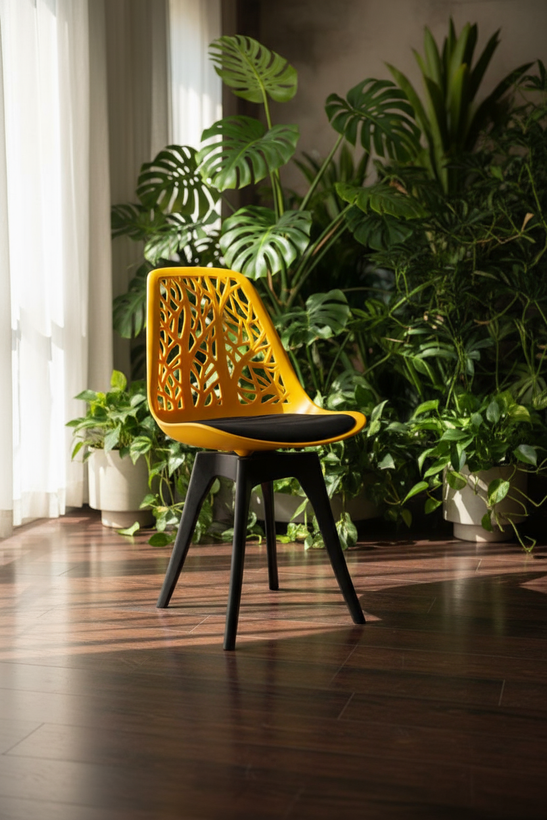 صندلی شاخ برگی زرد پایه پلیمری