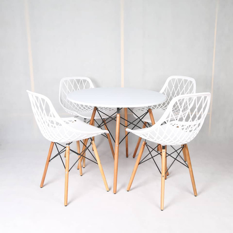 میز و صندلی ناهار خوری مدل الماس پایه ایفلی از جمله ستهای مدرن و زیبا برای فضاهای خانگی، کافهها و رستورانها است. این مجموعه شامل میز با صفحه MDF روکش کرهای ضدخش و ضدآب به قطر 85 سانتیمتر و ارتفاع 72 سانتیمتر است که در سه رنگ مشکی، سفید و طرح چوب تولید میشود. شکل میز معمولاً دایره یا مربع است و طراحی آن به گونهای است که علاوه بر زیبایی، دوام و مقاومت بالایی دارد.