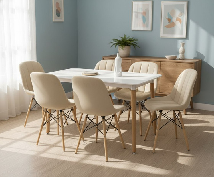 میز و صندلی ناهارخوری شش نفره؛ مدل مایا لمسهای پایه ایفلی