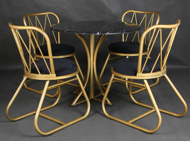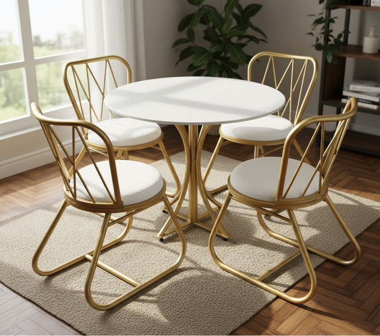 میز و صندلی غذاخوری 4نفره ماهلین(طلایی)با میز گرد گلدانی