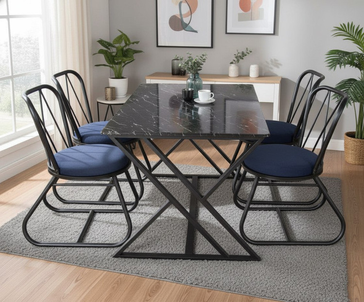 میز و صندلی چهار نفره ماهلین با میز الکس فلز مشکی