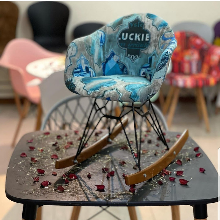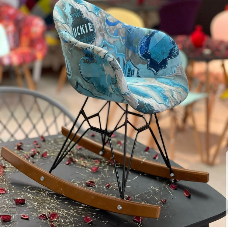 مجموعه ماهورچیر با تولید این صندلی با یک طراحی زیبا و داشتن دسته ، نشیمنی راحت را برای کودکان فراهم کرده است . صندلی راک پارچه ای کودک از صندلی راک فایبر کودک به جنس کفی PPR40 پلیمرنشکن و اسفنج و پارچه آماده شده ، با پایه از جنس چوب راش گزجستان و فلز ساخته شده است .
