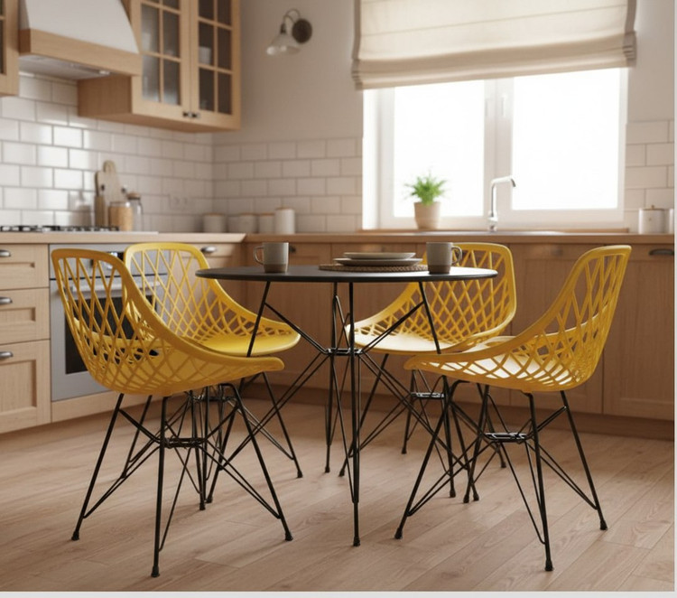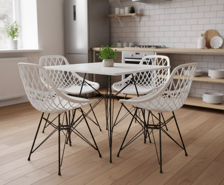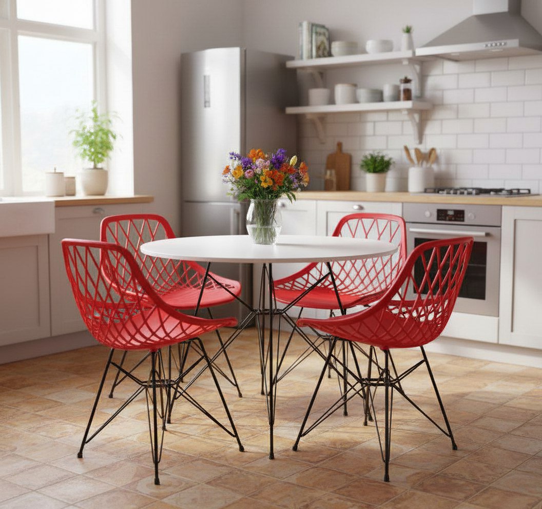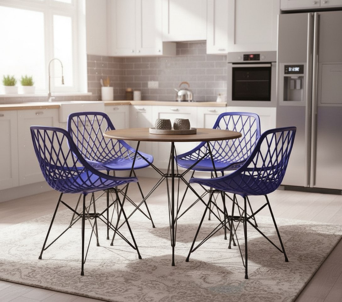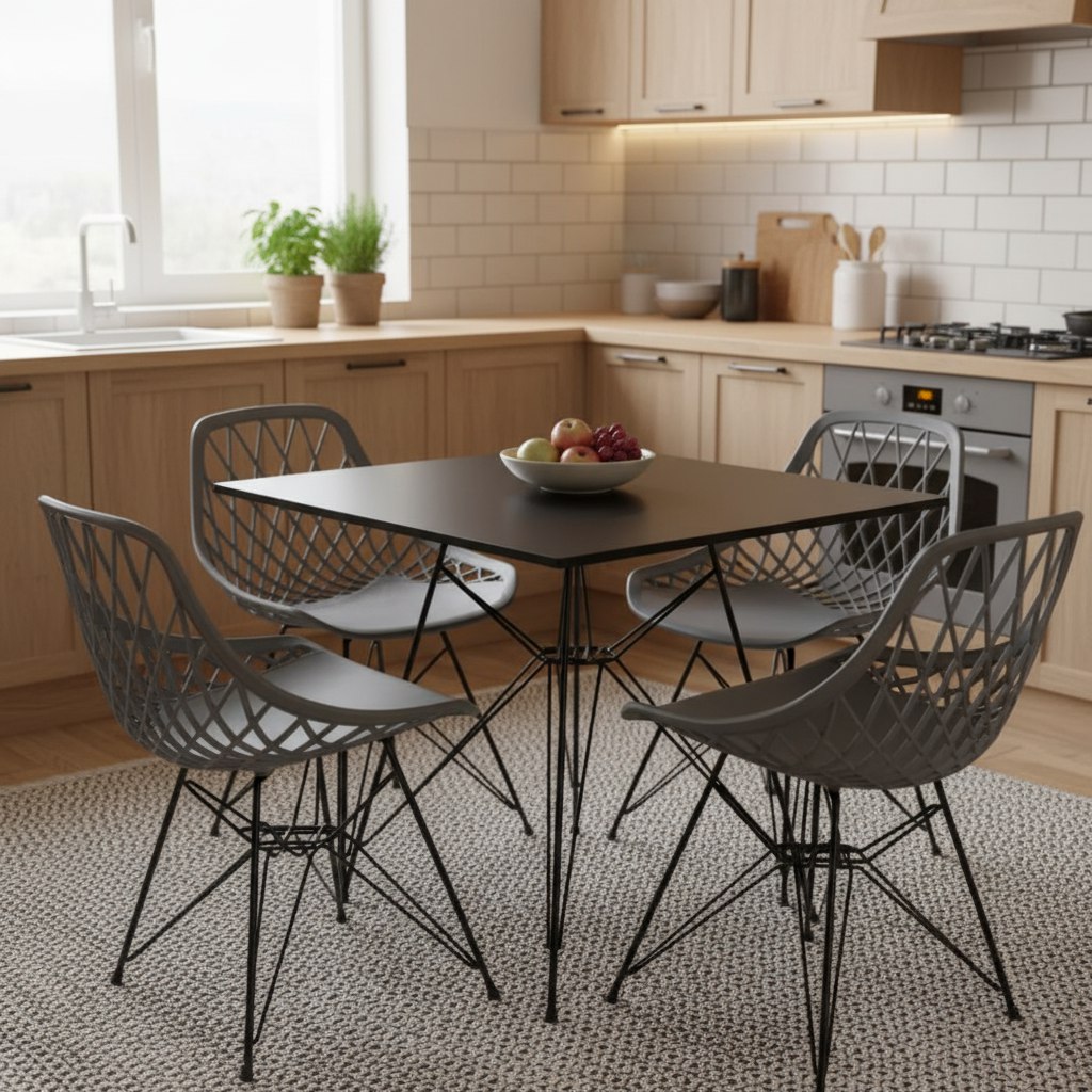 میز و صندلی ناهارخوری چهار نفره؛ مدل الماس فایبرگلاس پایه فلزی + میز پایه فلزی